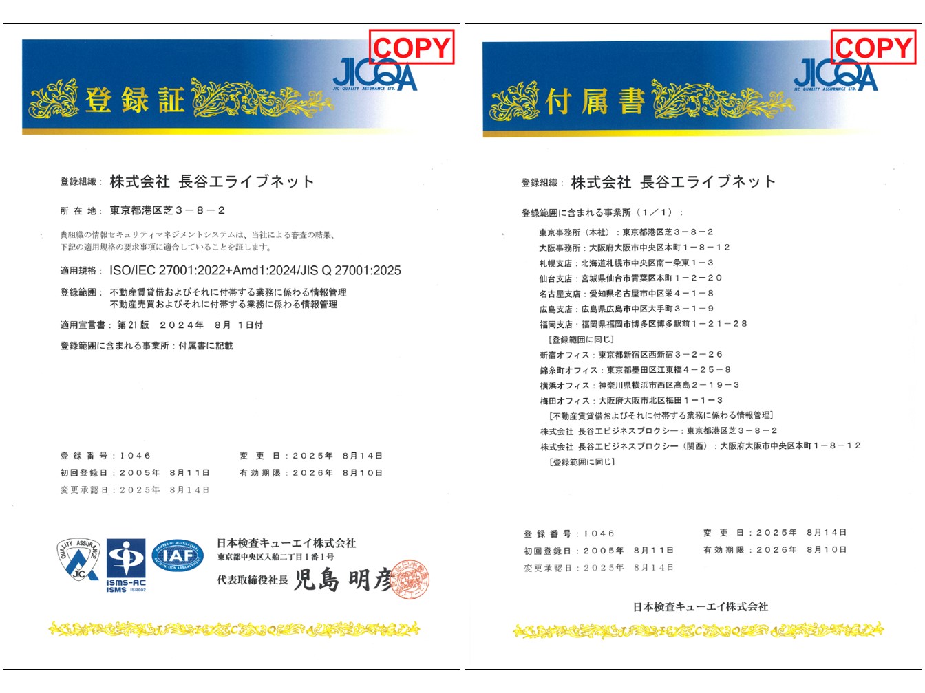ISMSへの取組みを通じて、日々の情報資産管理活動をISO/IEC27001の国際規格という第三者の目を通して点検・見直すことができました。又、お取引を戴いている企業様からお預かりしております重要な情報資産を適切に保護・管理するマネジメントシステムが構築できました。これを期に尚一層お客さまにご満足いただける社宅事 業や不動産事業の管理・運営と情報セキュリティの充実を目指してまいります。品質と併せ今後情報セキュリティを通じてお客さまの更なる満足度向上に取り組んでまいります。